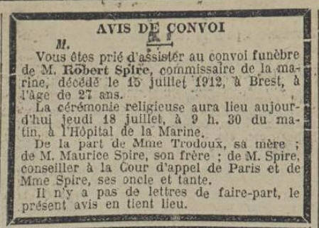 Extrait La Dépêche de Brest / 18 juillet 1912