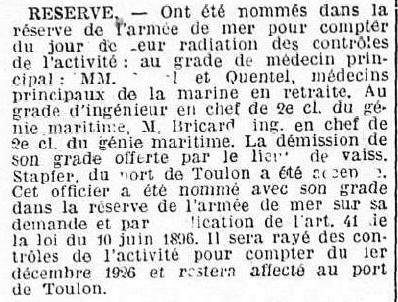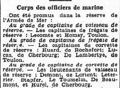 Lieutenant de vaisseau le 25 juin 1920.