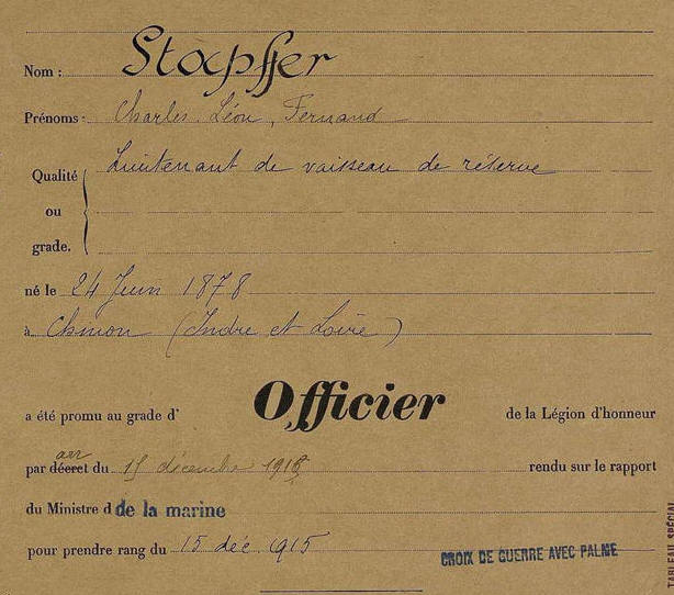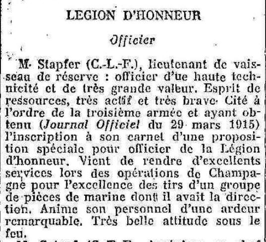 l'Armée navale en décembre 1915 : " Officier d'une haute technicité
