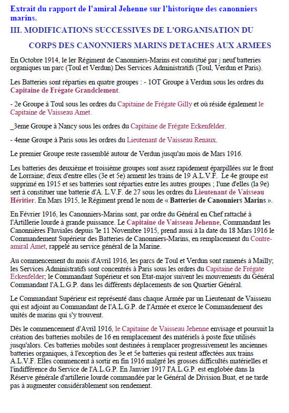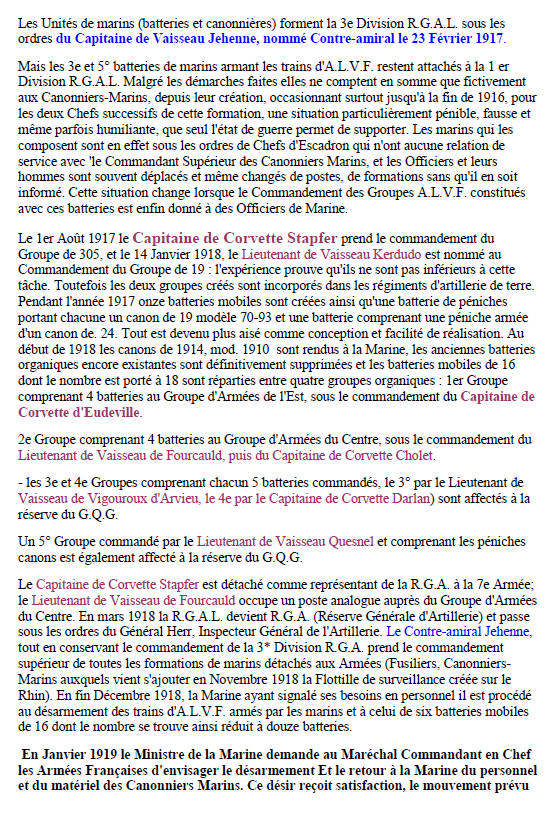 l'excellence des tirs d'un groupe de pièces de marine dont il avait