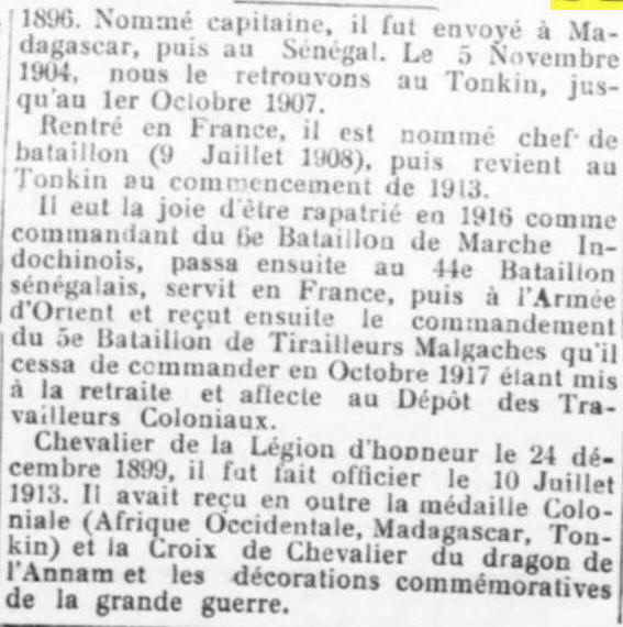 Officier de la Légion d'Honneur le 10 juillet 1913, étant Chef de
