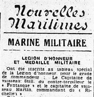 le 18 mars 1939, il commande le contre-torpilleur « Le Fantasque »