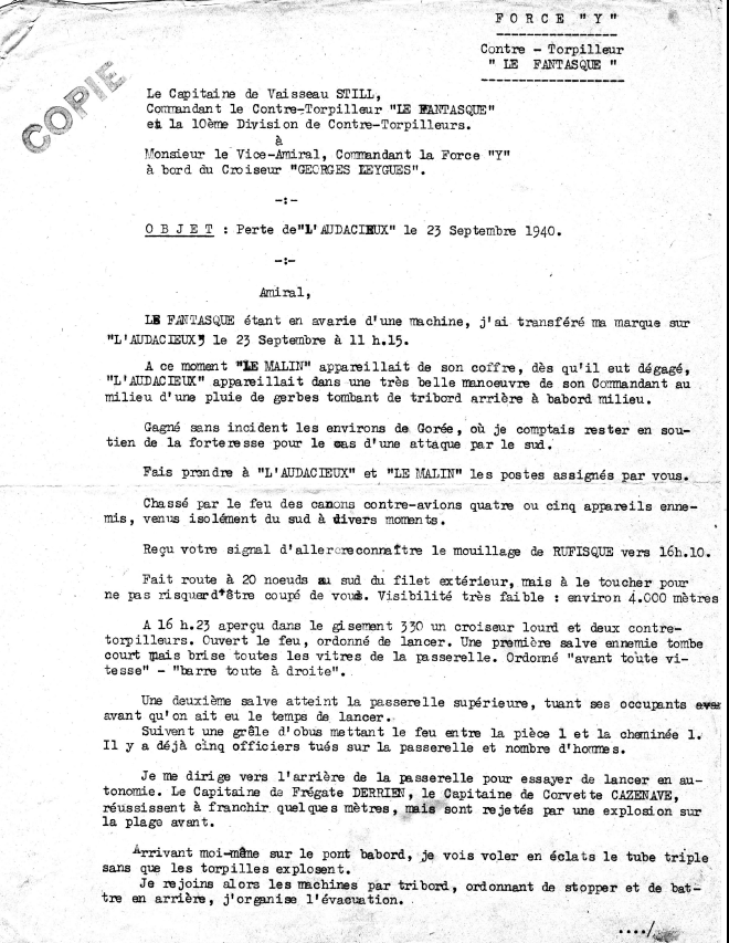 l’attaque de « l’Audacieux », le 23 septembre 1940 devant Dakar /