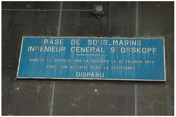 la plaque commémorative de l’ancienne base de sous-marins, à Lorient