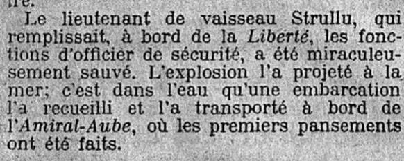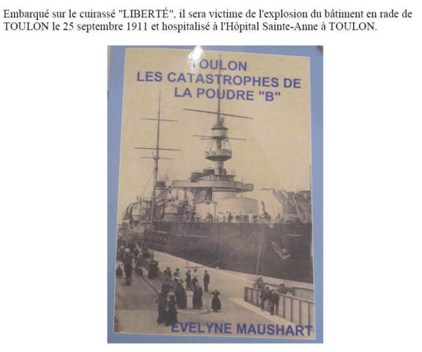 cuirassé "LIBERTÉ", il sera victime de l'explosion du bâtiment en