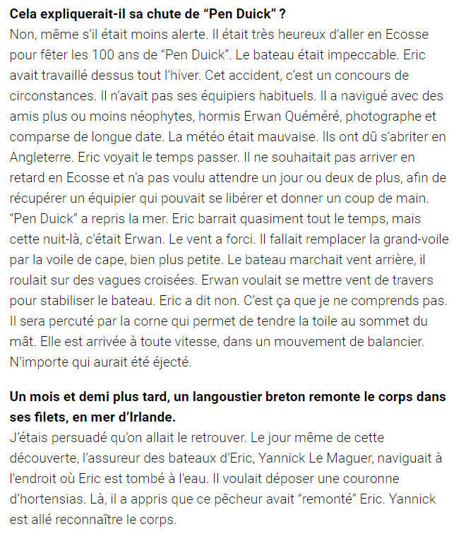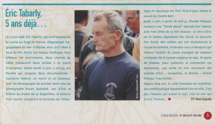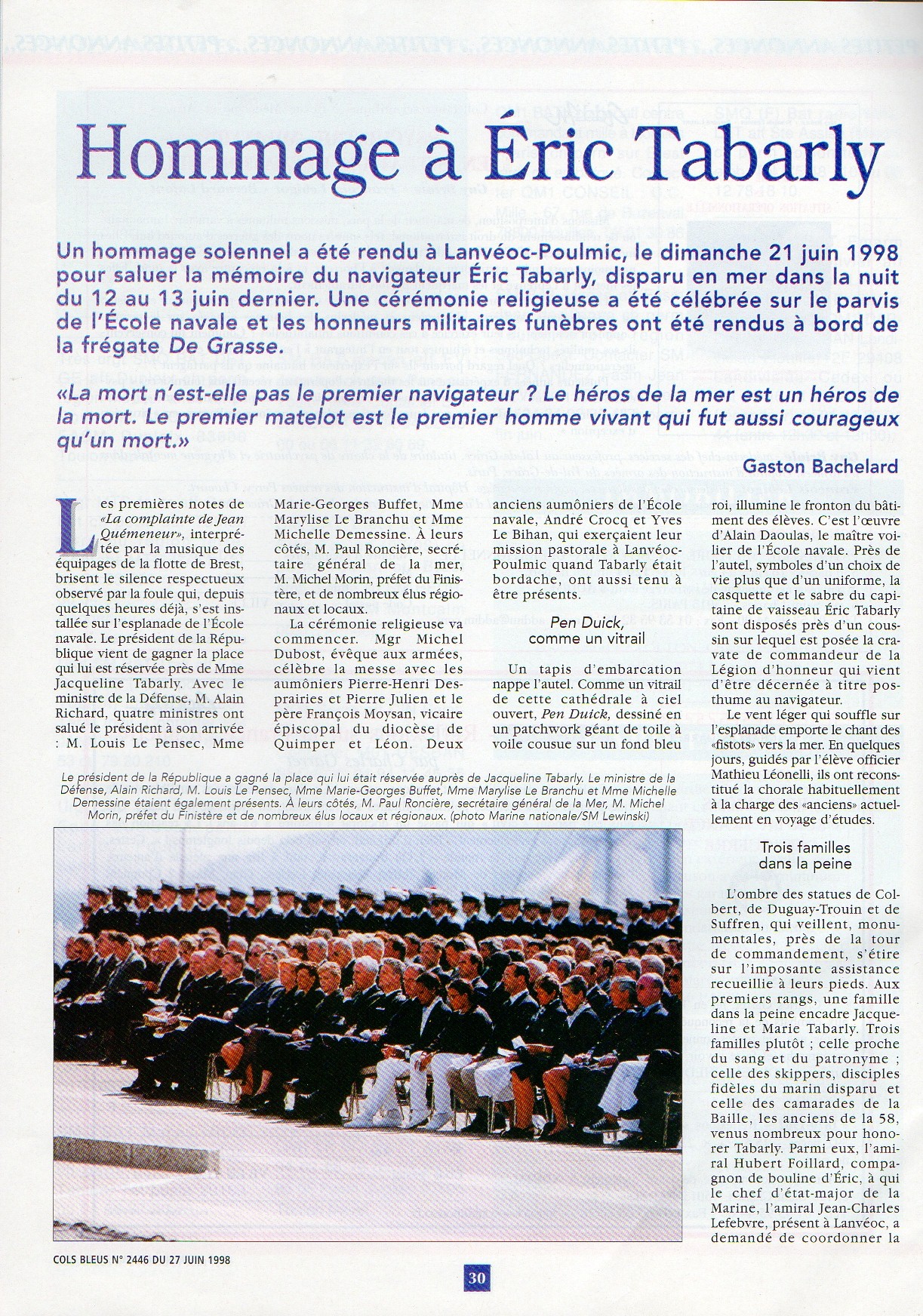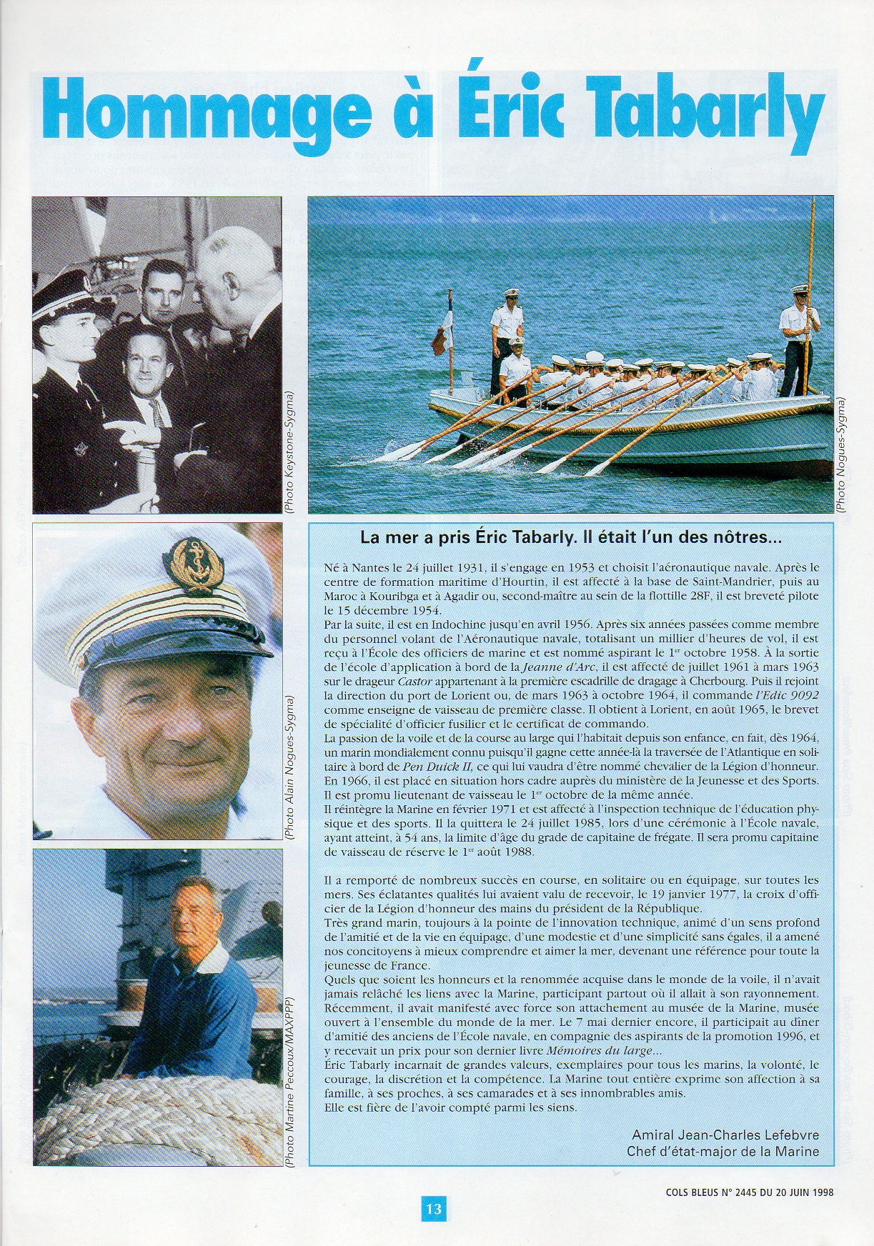 disparaît en mer dans la nuit du 12 au 13 juin 1998, à l’âge de 66