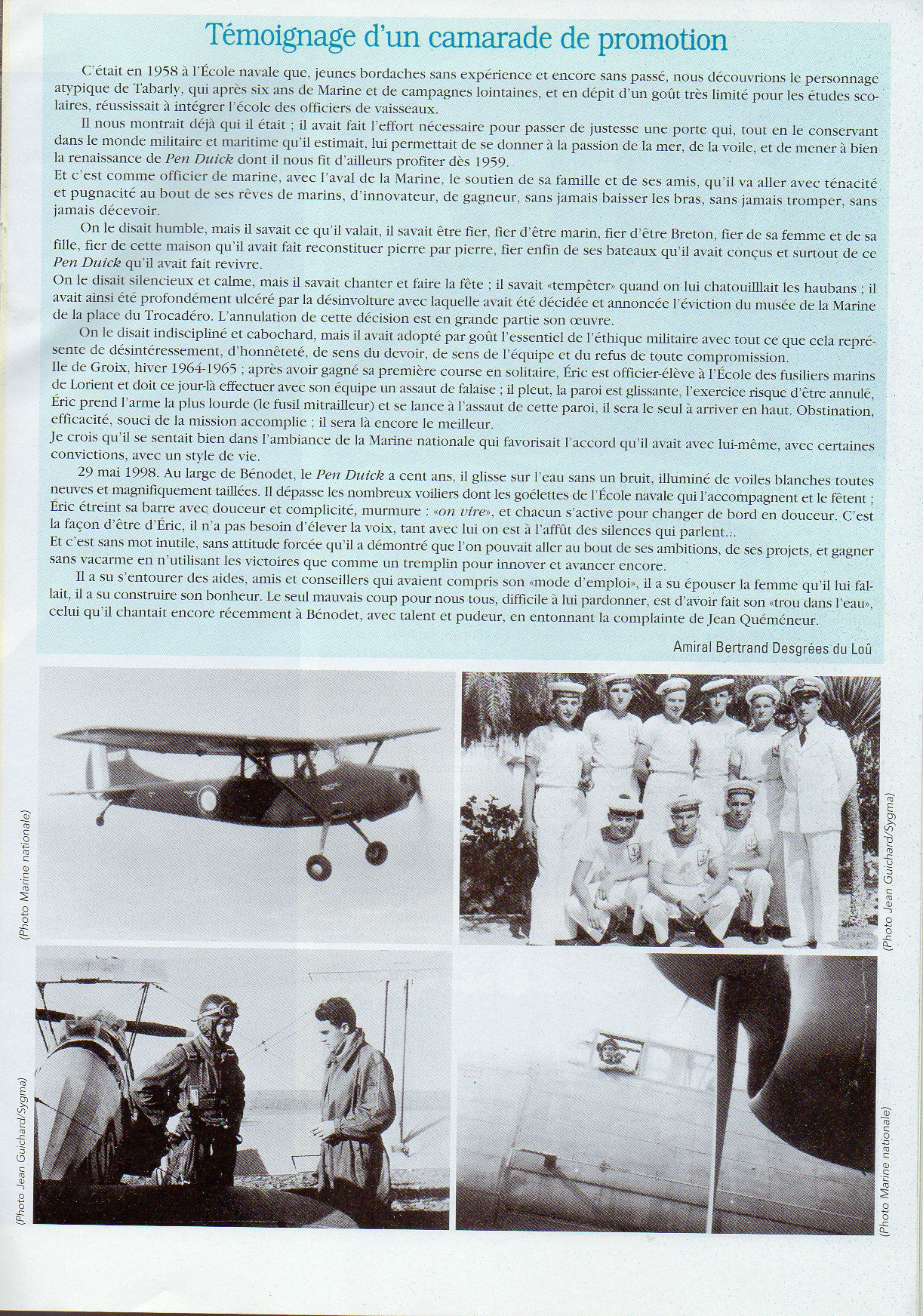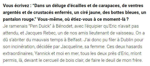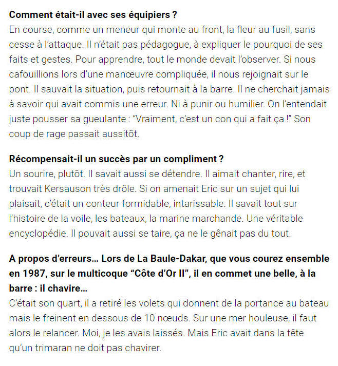 l'éthique de ce marin exceptionnel avaient été comprises et devaient