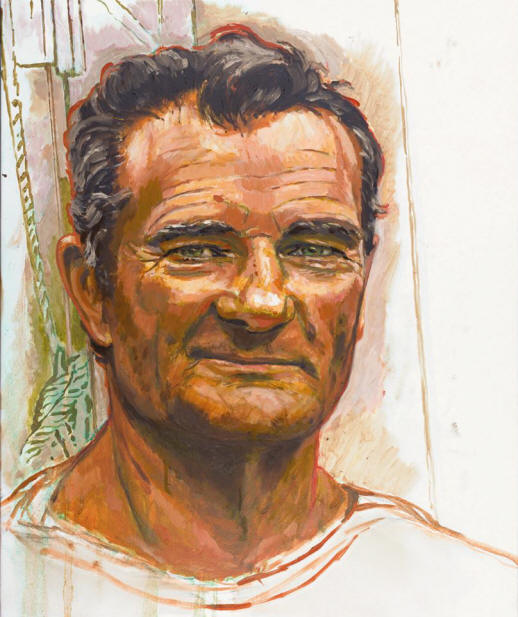 © Titouan Lamazou, Eric Tabarly, 2017. Huile sur toile, 55 x 46 cm.