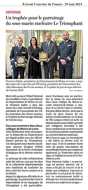 Extrait Courrier de l'Ouest / 29 mai 2023