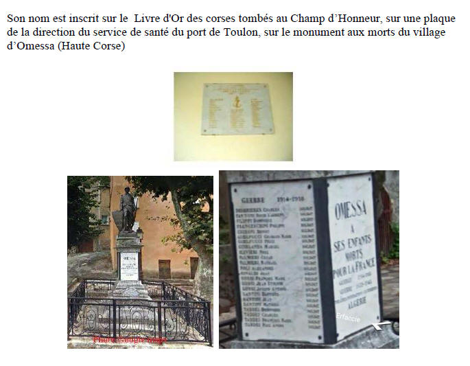 OMESSA (Haute-Corse) - Décédé le 26 novembre 1916 en mer, au large
