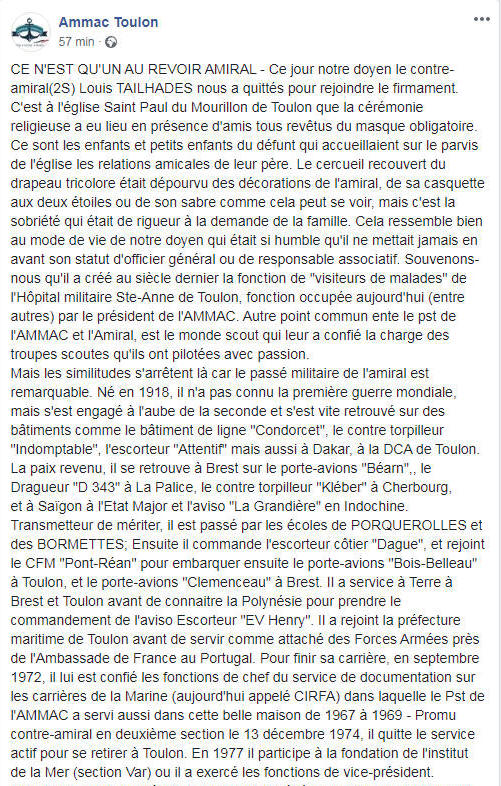 100 ans / Photo du 13 décembre 2018 - Facebook / Ammac Toulon