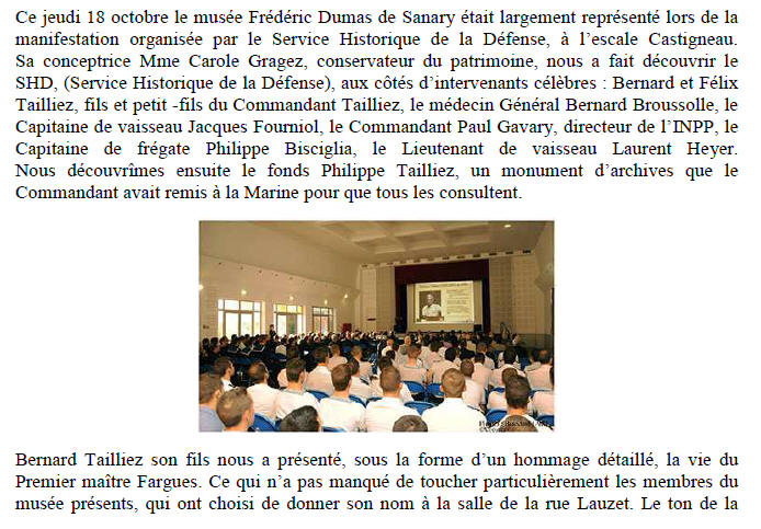 inaugurale du Musée Frédéric Dumas, par la Marine Nationale, le