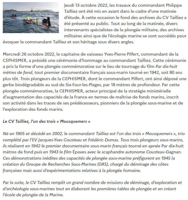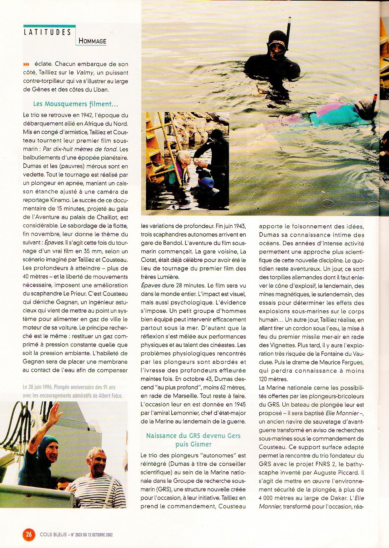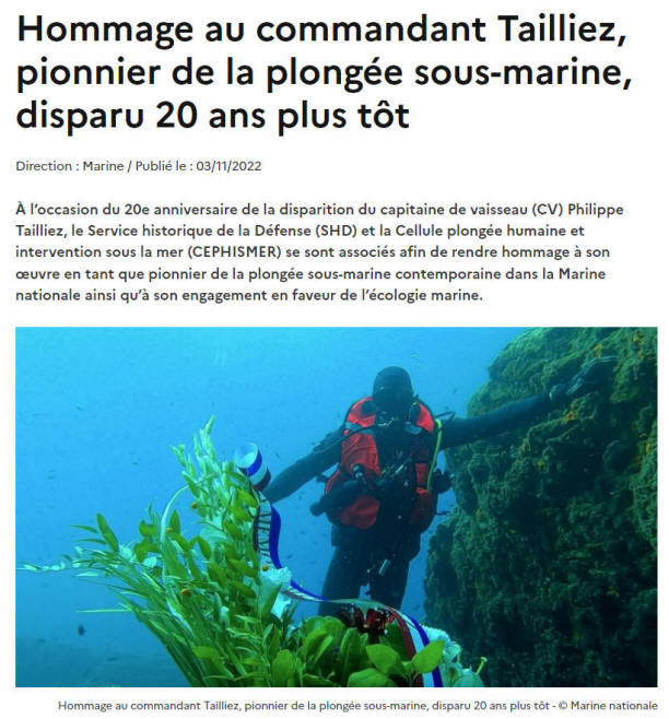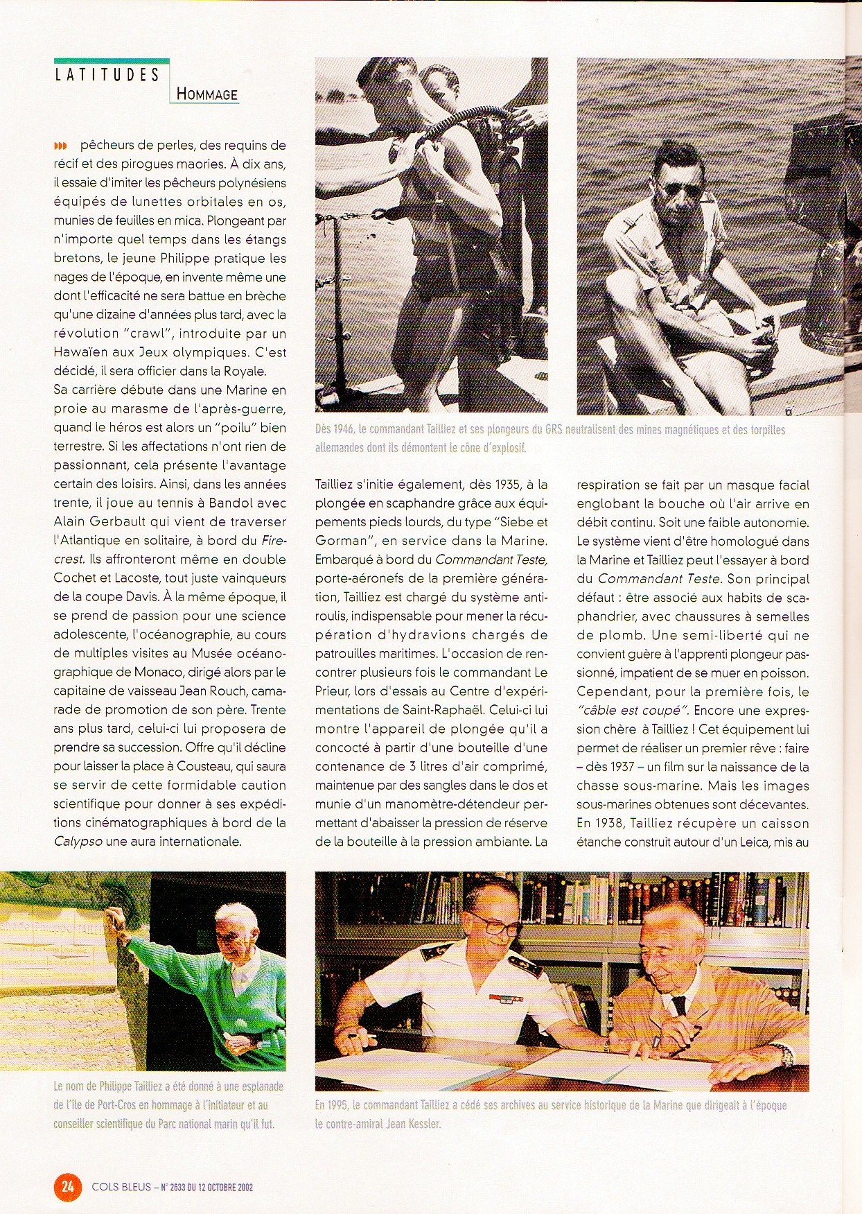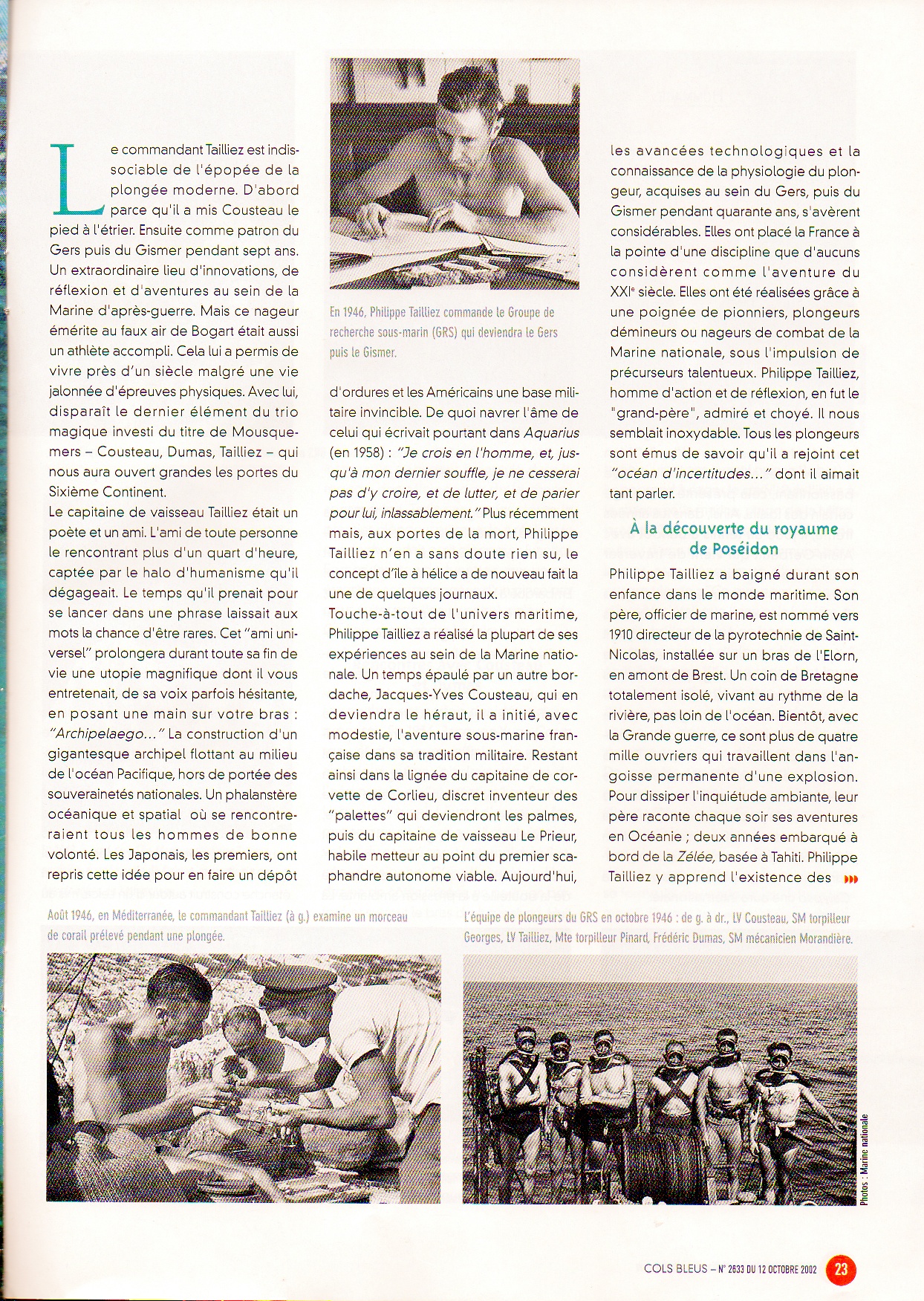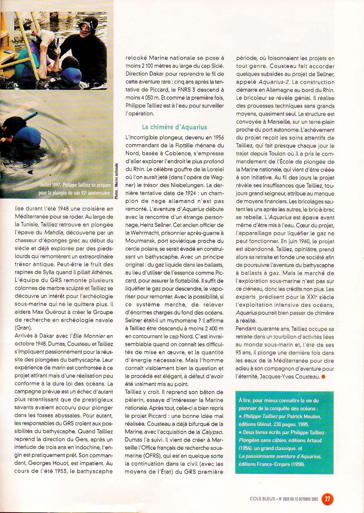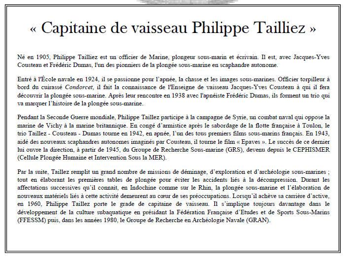 Philippe Tailliez nous a quitté en 2002 à l'âge de quatre vingt