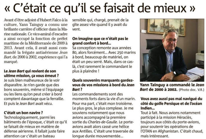 - et enfin la frégate antiaérienne « Jean Bart » de 2000 à 2002,