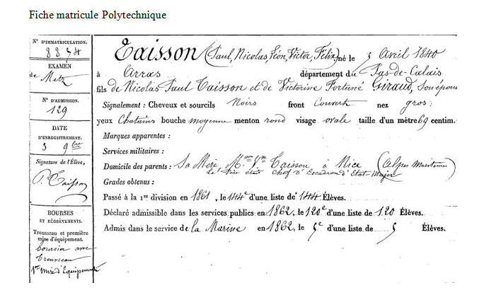 Élève de l'École polytechnique en 1860, opte pour la Marine.