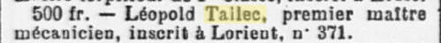 Mécanicien principal de 2ème classe le 14 septembre 1907; port