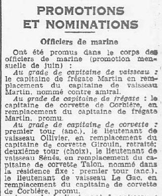 de vaisseau de 2ème classe le 5 octobre 1912; port CHERBOURG.