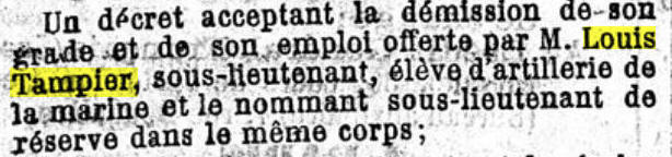 promotion 1878, opte pour l'Artillerie de Marine.