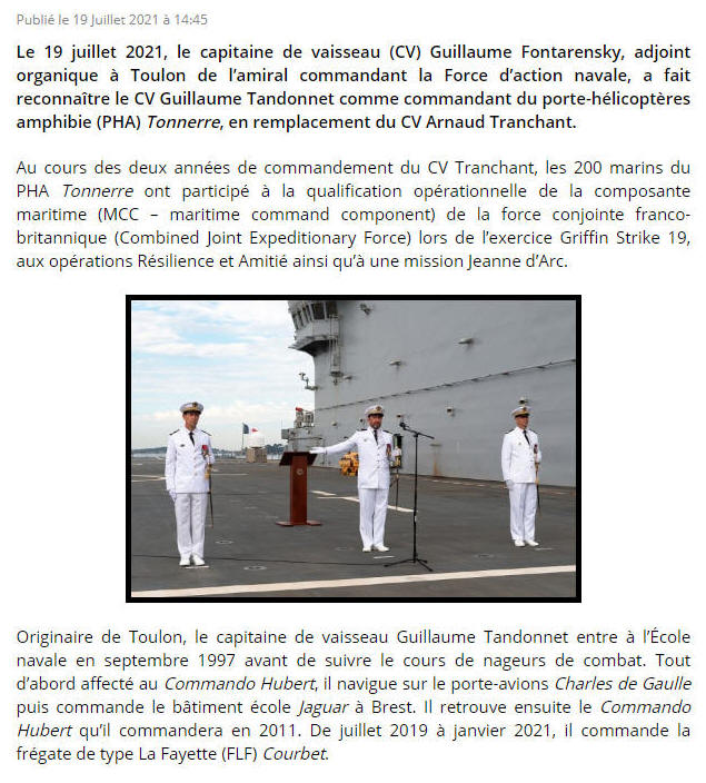 2021, attribution de commandement / Porte-hélicoptère amphibie