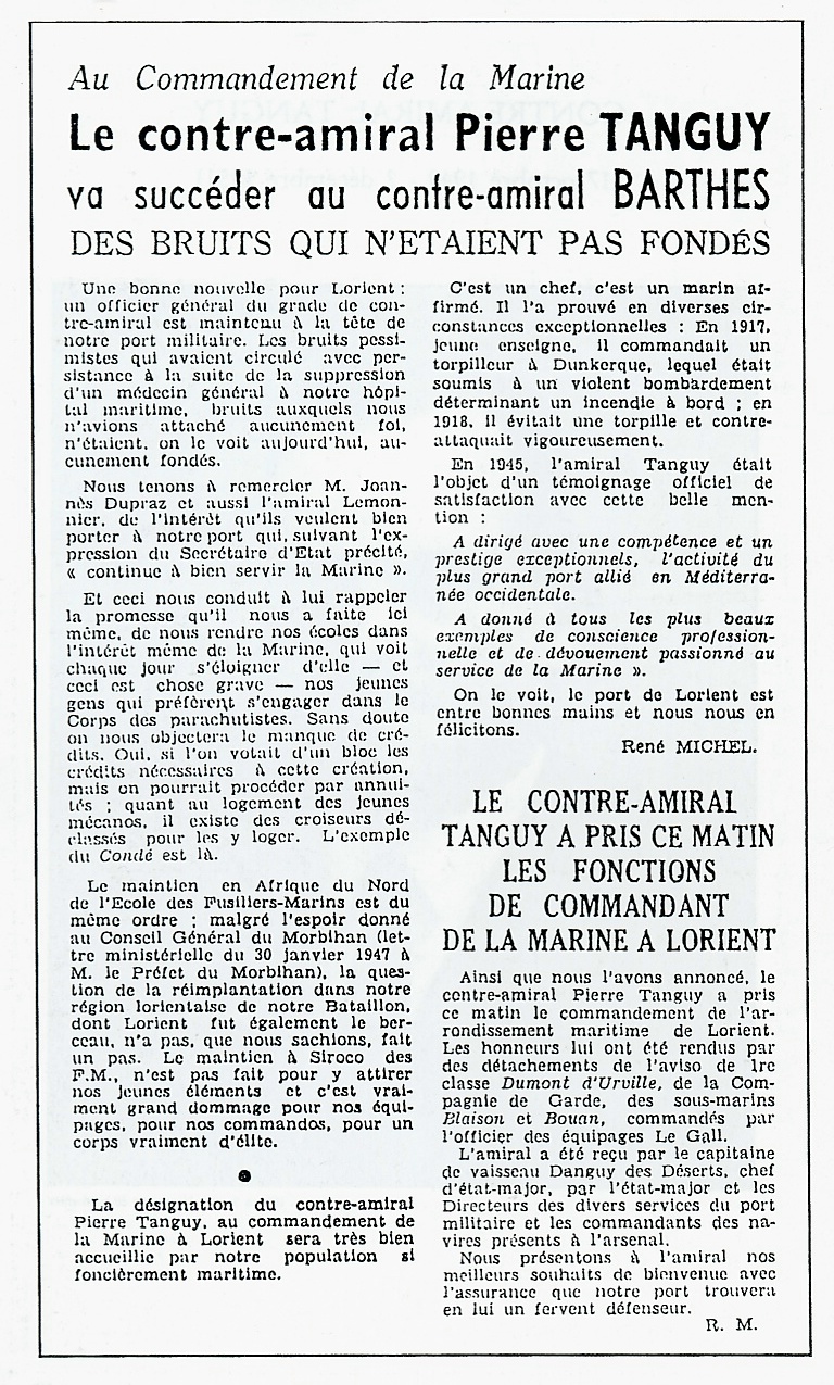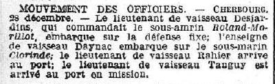 Par la suite, cet Officier Capitaine de frégate, Second sur le