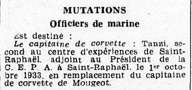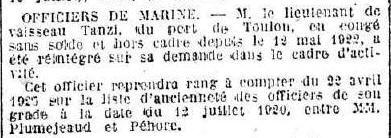 Marine en 1925 comme lieutenant de vaisseau avec rang du 12/07/1920.