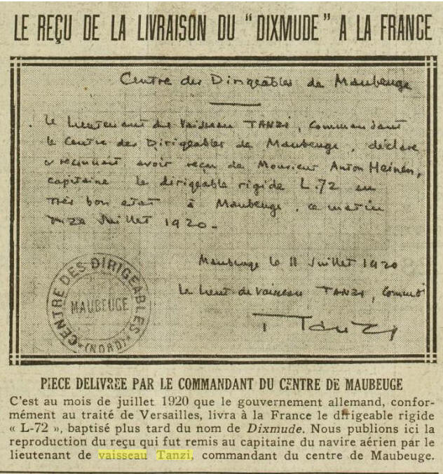 dirigeables de MAUBEUGE du 10 juillet 1920 au 10 août 1920.