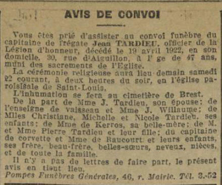BLOIS (Loir-et-Cher) - Décédé le 19 avril 1922 à BREST (Finistère)