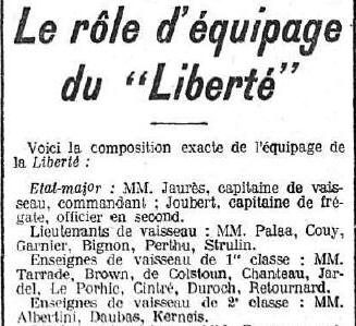 le cuirassé "LIBERTÉ", 1ère Escadre (Cdt Marie JAURÈS).