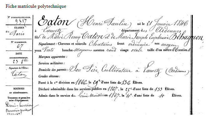 Sous ingénieur de 1ère & 2ème classe le 2 septembre 1874