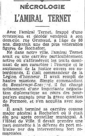 - Décédé le 26 janvier 1933 à ROCHEFORT (Charente maritime) (59 rue