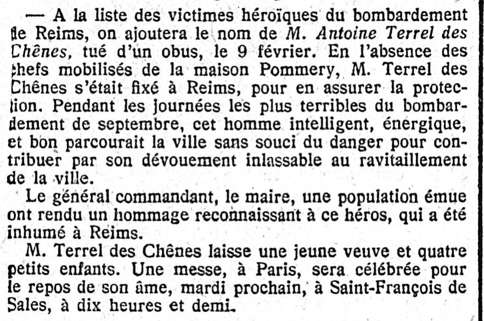 VILLIE-MORGON (Rhône) - Décédé le 9 février 1915 à REIMS (Marne)