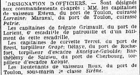 d'achèvement du torpilleur "ORAGE" dont il prend le commandement à