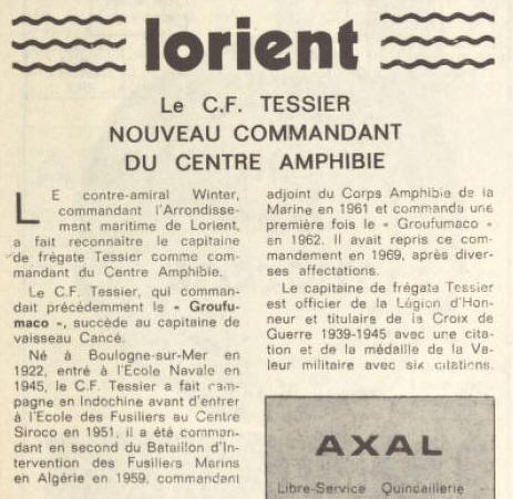 Commande le centre amphibie de 1971 à 1973, à Lorient