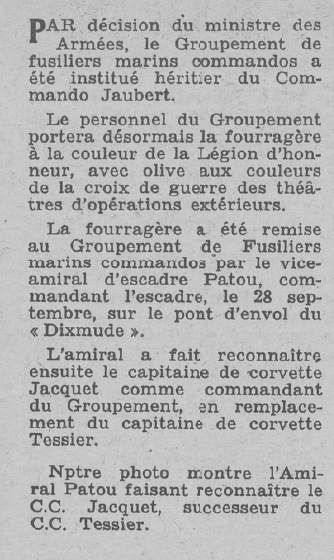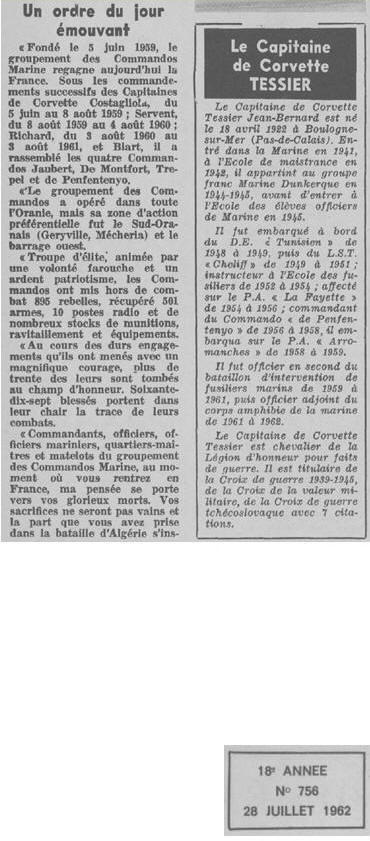 Extrait Cols Bleus / 10 octobre 1964 / Le Cc Tessier, à droite
