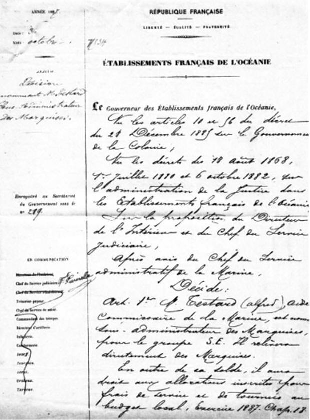 administrateur du groupe Sud-est des Iles Marquises, à Hiva-Oa