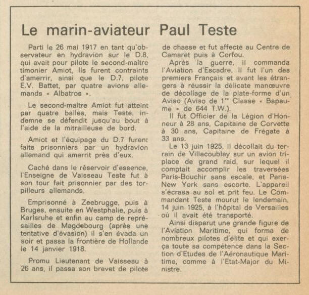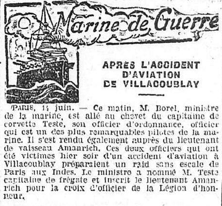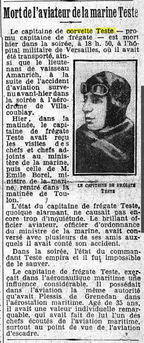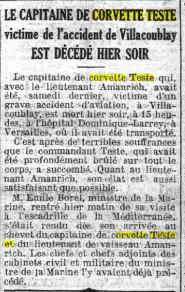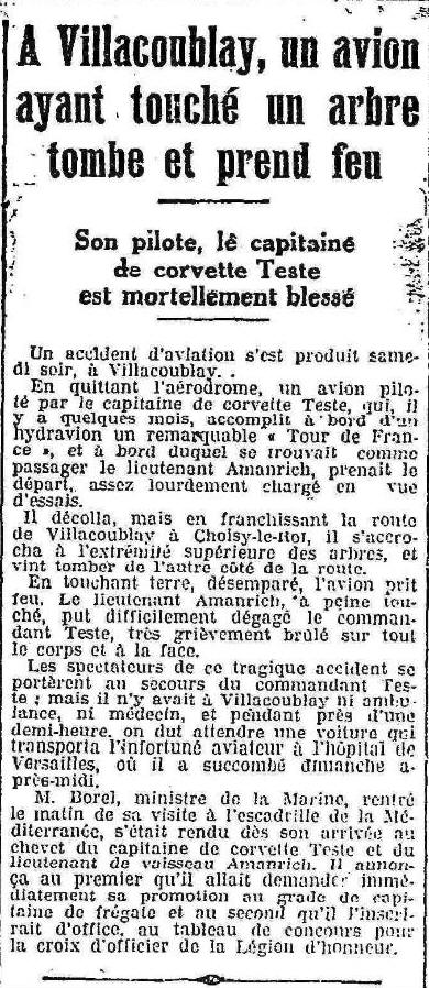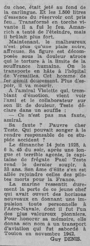 Villacoublay le 12 juin 1925. Gravement brulé, Paul Teste décède le