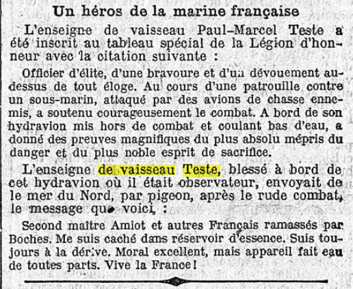 et regagne la France en janvier 1918. Promu Lieutenant de Vaisseau