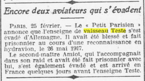 À nouveau abattu en mars 1918, il est fait prisonnier mais parvient