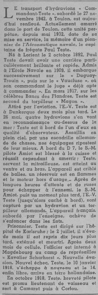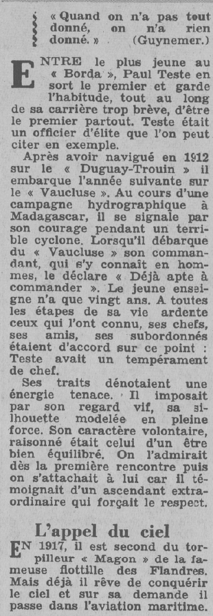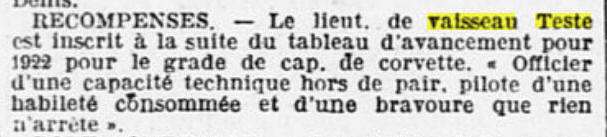 Affecté au cabinet militaire du Ministre de la Marine, Paul Teste
