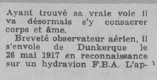 FLANDRE. En mars 1917, il opte pour l'aviation maritime comme