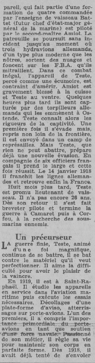 carrière à la promotion de l’aviation navale. Premier aviateur