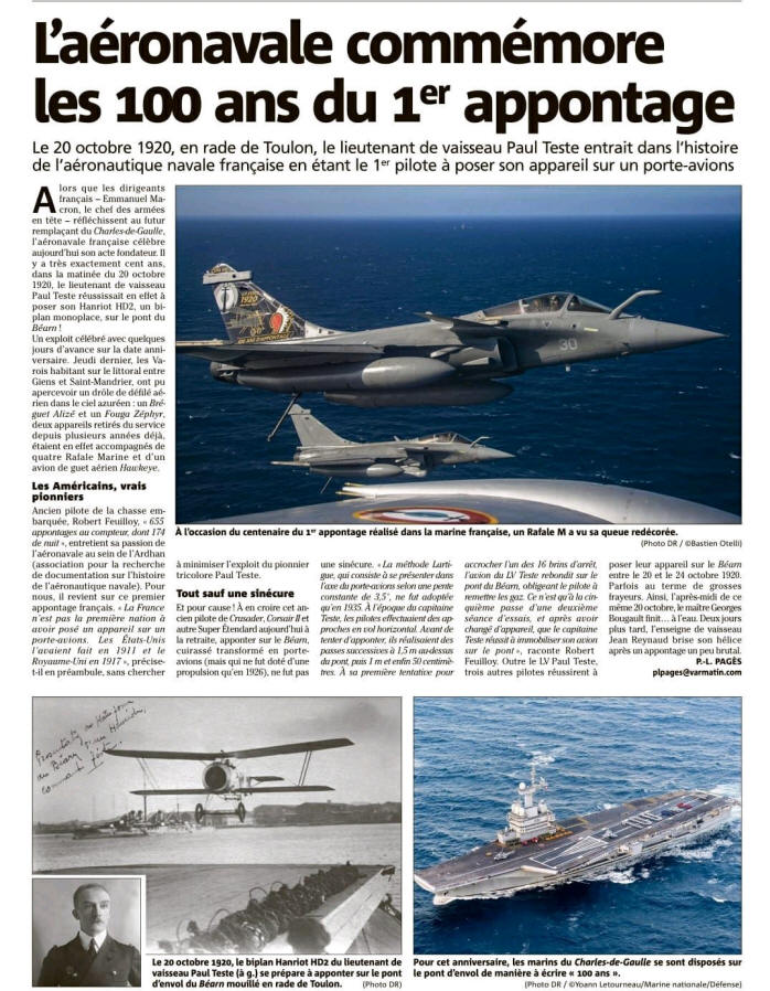 se poser sur le porte-avions Béarn au large de Toulon le 20 octobre