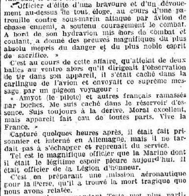 chasse ennemis, a soutenu courageusement le combat. A bord de son