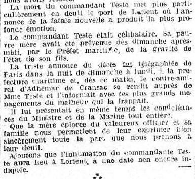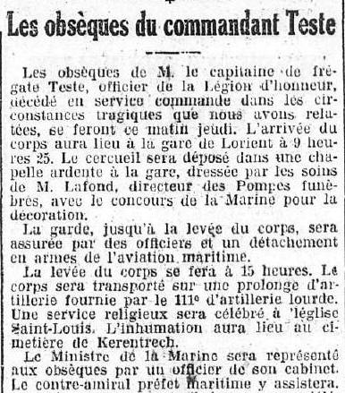 est inhumé à Lorient le 25 juin au cimetière de Carnel.