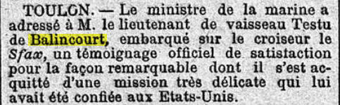 le 13 janvier 1885, Commandant la chaloupe canonnière "REVOLVER",