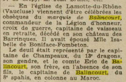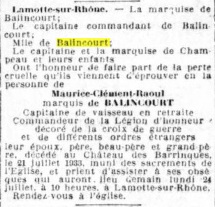 PARIS Xème (Seine) - Décédé le 21 juillet 1933, château des Barrinques