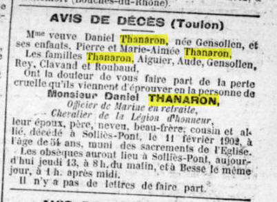 BRIGNOLES (Var) - Décédé le 11 février 1902 à SOLLIES LE PONT (Var)