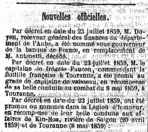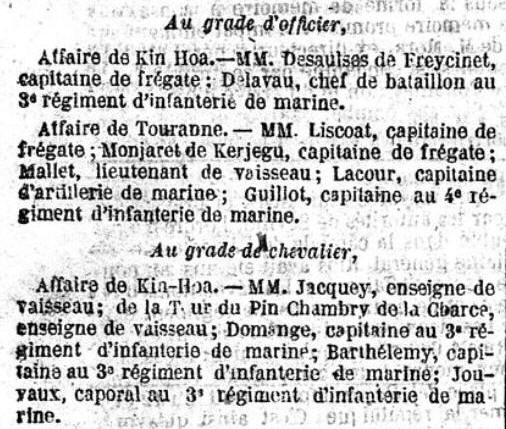 pour l’expédition de Cochinchine , il fut très brillant à l’affaire