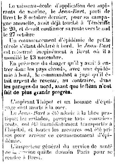 à BREST (Finistère) - Décédé en mer le 9 novembre 1869