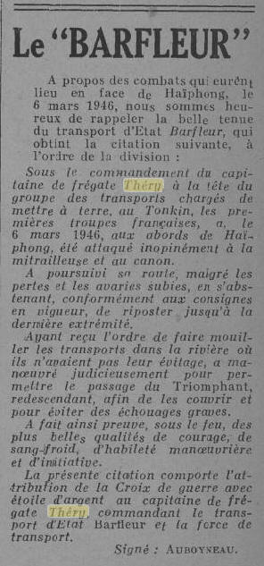 du "BARFLEUR", avec lequel il fait la guerre d'Indochine.